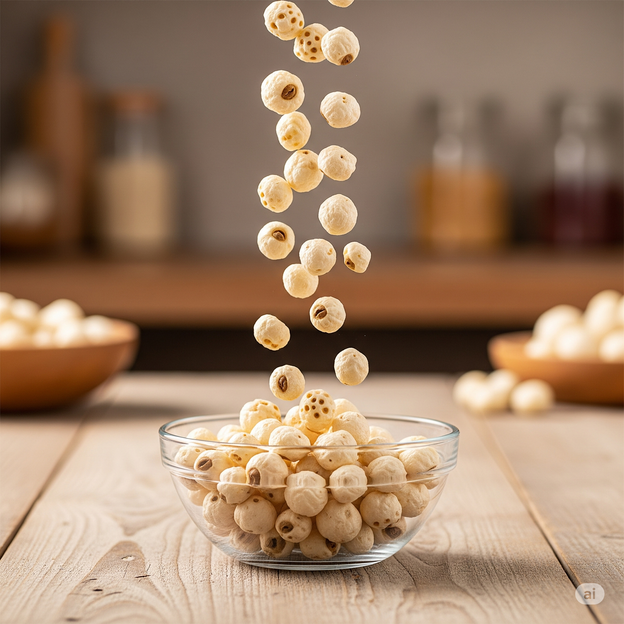 Makhana (Lotus Seeds). Available in all grades, sourced for light texture and nutritional value.